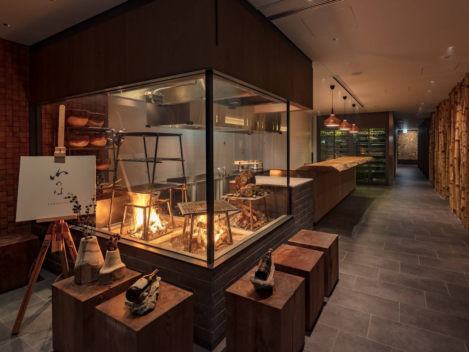 【薪】 聖護院蕪の薪火焼き 鯛 湯葉餡 針柚子 【汁物】 蟹の摺り流し 百合根真丈 壬生菜 振り柚子 【山の幸/海の幸】 富士の介炙り 林檎卸し和え 柚子味噌 椎茸 大根 赤蕪 いくら 白和え 蒸し鮑 春菊 胡桃 鱈白子の玉地蒸し ポン酢餡 紅葉卸し 慈姑カステラ 慈姑煎餅 芹と黄韮のミルク浸し 富士桜ポーク 黒七味 【鮮】 本鮪中トロ 寒鰤 松川鰈 あしらい彩々 【焼物】 合鴨香草焼き 下仁田葱 菜の花 金時人参 マデラソース 【口直し】 富士山麓蕎麦 叩き長芋 海苔 振り柚子 【焼物】 黒毛和牛の柚香焼き 燻製塩 山葵 柚香ダレ 【食事】 寒鯖の釜炊き御飯 野沢菜 茗荷 煎り胡麻 (山梨県産武川こしひかり使用) 【留椀】 赤出汁 【香の物】 盛り合わせ 【水菓子】 練乳ババロア 苺キャラメリゼ 黒豆シャーベット |